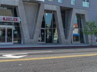 A vibrant city scene in California, USA, featuring modern architecture, bustling streets, and a variety of shops and restaurants.