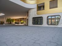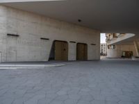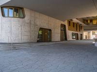 This stunning stock photo captures the essence of urban city life in Germany. The modern architecture of a residential area is showcased against a clear sky, emphasizing the clean lines and sleek design. The concrete walls and paved surfaces create a visually appealing urban design, while the hard shadows add depth and dimension to the scene. This captivating image is perfect for illustrating concepts related to city living, architecture, and urban design.