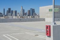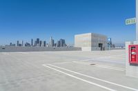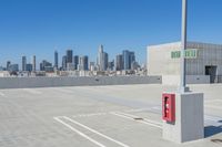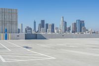 A stunning view of the metropolitan area in Los Angeles, California, USA, showcasing the city's impressive architecture, skyscrapers, and skyline against a clear blue sky. The open spaces and parking decks add to the urban design, while the surface of the cityscape is lined with composite materials and asphalt. In the foreground, buildings and houses demonstrate the real estate and property opportunities in this bustling city. The horizon extends towards the sparkling water of the sea, creating a mesmerizing contrast of light and shadow. The cement and concrete bridges provide transportation access, while the overall design of the city reflects a vibrant city life and human settlement.
