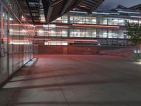 A metropolitan area comes alive at dawn with a mix of concrete, wood, glass and neon reflecting in a public plaza. Automobiles and public transportation dart along the roads as the city's structures, walls, windows and flooring provide a unique urban landscape.