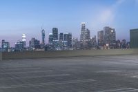 A skyline of metropolitan architecture and infrastructure awakens as the morning light hits the concrete surface of a downtown parking deck in a major city.