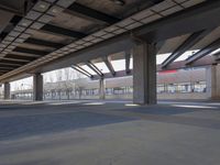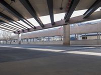 A view of the urban design in Barcelona, Spain, showcasing the architecture and city life. The photo captures a bridge and underpass made of low concrete and steel, with a straight road leading through the metropolitan area. The composition includes elements like flooring, roofing, columns, and fixtures, while tints and shades add depth and dimension. The image also features vegetation, trees, and a parking area, creating a symmetrical and visually appealing scene.