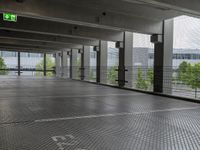A modern concrete street in the foreground and a parking deck and parking garage in the background creates a high profile of the city of Berlin, Germany in Europe.