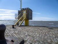 The coastal city of Bremen, Germany offers a peaceful and vibrant atmosphere, with a variety of architecture, cobblestone roads, and waterfront views. The cityscape features a lighthouse, boardwalk, pier, and wind turbines. On a clear day, the azure sky provides a striking contrast to the asphalt and wood surfaces of the city.