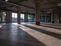 A straight road leading through the urban landscape, showcasing the city life and open spaces in the concrete jungle. The hard shadows and profiles create a striking visual effect on the surface of the road on a sunny day.