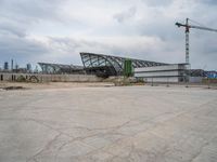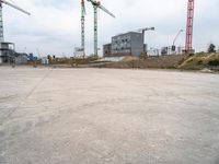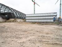 A composite view of city life in Germany, featuring a combination of buildings, bridges, trees, and other features like asphalt, concrete, gravel, soil, sand, and metal, as well as an overhead power line, a road surface, construction, and a crane. The view shows the industrial landscape of Europe, with open spaces, factories, and vegetation.