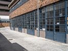 A cobblestone road curves through an alley-way of brick walls, wood floors and windows in the city of Hinterhof, Germany. A gas line runs parallel to the public space, and the facade of a factory is visible in the background. Symmetry and classic architecture give the metropolitan area its residential charm, with tints and shades of trees, grass, flowers and sunlight adding to the urban design.