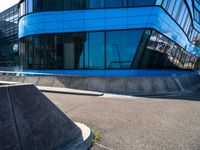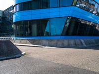 View of a typical urban street in the Netherlands. The mixed-use landscape of modern architecture, public utilities and public spaces are seen, with features like a high-rise building, a bridge, skylines, a bus stop, parking lots and benches. Tints and shades of grey, yellow, blue, and green are seen, with sunlight and a sunhat providing shade in the freezing winter.