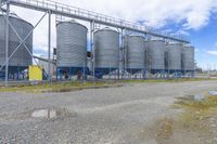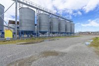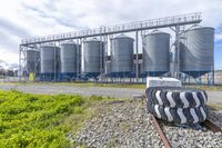 A view of a cityscape with industrial buildings and urban design. The architecture and infrastructure are highlighted against the backdrop of a lake and nature.