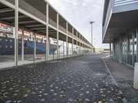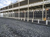 A clear day in the metropolitan area of Lisbon, Portugal reveals a composite of urban design elements. From the cobblestone streets and grass to the steel beams and mesh, the city contains a variety of industrial elements including a stadium, bridge, harbor, pier, and factory. The tar and asphalt roads, railway tracks, and landing provide transport hubs that connect the city's public spaces.