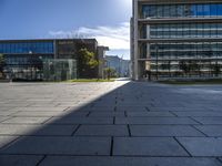 Modern architecture, urban design, and infrastructure of Lisbon, Portugal can be seen in this photo. A variety of residential and office buildings, skyscrapers, and towers create a unique cityscape. Pavers, vegetation, and composite materials can be seen on the ground, while clear skies and hard shadows provide the perfect backdrop for the city. It is a vibrant city full of life, business, and public spaces where people can come together.