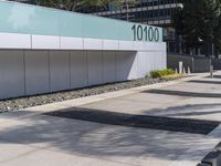 An office building towers over the city of Los Angeles, California, as the modern architecture of the urban landscape is framed by a concrete street, grassy sidewalks, and a clear sky. Leafy trees, a tar-covered road surface, and tall condominiums create a residential area near a business district, highlighting the unique combination of public and private spaces in the area.