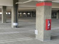 A composite material facade of a high-rise building in Los Angeles, California, USA, featuring wood flooring, a shade of grey, a parking lot and vegetation, a gas fixture, a hall with a ceiling, columns and a font with tints and shades, all under the bright sunshine of the day.