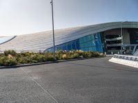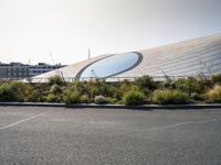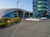 A scenic view of the city skyline of Holland in the Netherlands, with roads, buildings, skyscrapers, trees, vegetation, and public infrastructure. The urban design is highlighted by the shade of the trees, the slope of the road surface, and the fixtures in the composite material. Dawn brings a hint of the winter season, with street lights, overhead power lines, and a bus stop to the bustling city life.