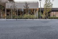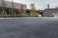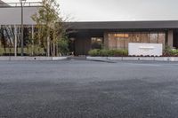 A view of a low-rise residential building in Osaka, Japan. The architecture blends with the surrounding neighborhood, creating a mixed-use property. The clear sky and sunshine highlight the concrete facade and the cobblestone road surface.