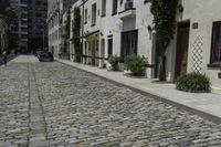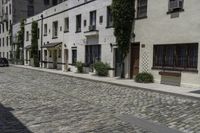 A black-and-white image showcasing the urban design of a residential area with buildings, roads, windows, and vegetation.