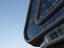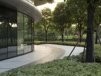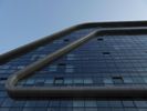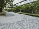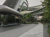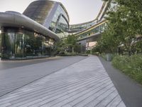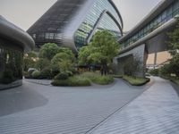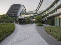 A reflection of the city's futuristic architecture can be seen in the skyway of Soho, Shanghai, China. The mixed-use plaza includes shopping, condominiums, office buildings, public spaces, and residential areas, all beneath a clear sky and surrounded by lush vegetation. Urban design and public transportation create a beautiful landscape of park areas, courtyards, and walkways.