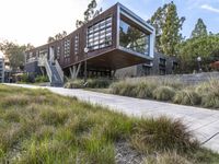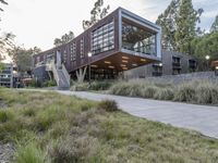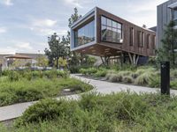 A dawn view of a residential area featuring a mixture of modern architecture, public spaces, and greenery in the suburban city. The lane features cobblestone walkways, driveways, pavers, and asphalt roads, with vegetation, trees, and recreational areas filling up the landscape.
