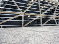 The modern architecture of Taipei Music Center in Kaohsuing City, Republic of China. The urban design and futuristic elements of the structure are highlighted against the clear sky and ocean below.