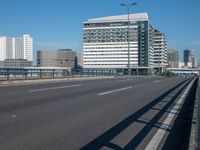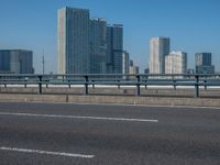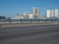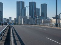 The bridge and office building of the Tokyo cityscape, with asphalt roads and a clear sky above, showcasing the urban design of Japan's largest city.