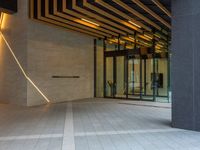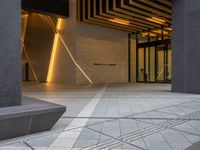 Urban design in Tokyo, Japan is illuminated by modern architecture and artificial light. The open space and paver provide a connection to city life during the day.