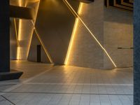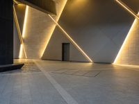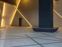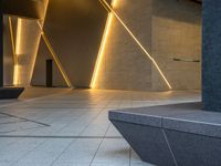 The modern architecture and cityscape of Tokyo, Japan illuminated by artificial light at the break of day, with a paver visible in one quarter of the frame.