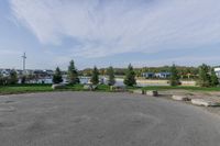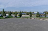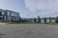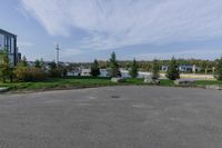 A view of the urban design and architecture in Toronto, Canada, with vegetation, trees, and residential areas surrounding a road surface and a harbor.