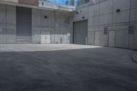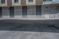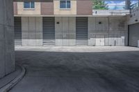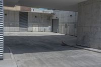 A view of a modern urban design in Toronto, Ontario, Canada. The image features a road surface made of asphalt, surrounded by buildings and vegetation. The grey concrete walls and wood fixtures provide a contrast to the greenery. The open space and parking garage in the background add to the urban atmosphere of the city.