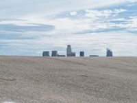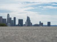 The open asphalt surface of the city beneath the cloudy sky, providing an expansive view of the cityscape and skyline beyond.