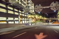Exploring the city of Los Angeles at night, with its bustling roads, modern architecture, and artificial light sources, all captured in one quarter of the frame.