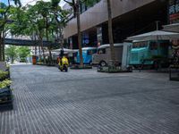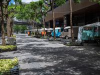 The bustling city of Taipei, Taiwan, provides a variety of modern architecture, infrastructure, and urban design. The evergreen grass family provides a contrast of color to the asphalt roads, concrete buildings, and brickwork. City life is alive and well with cars, stores, restaurants, and people out and about enjoying the day.