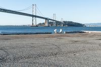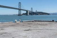 A straight road leads the eye through an urban skyline to a coastal harbor, with a jetty and pier extending into the open ocean below.
