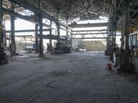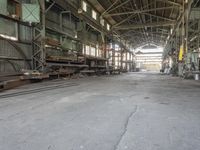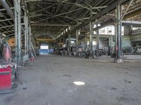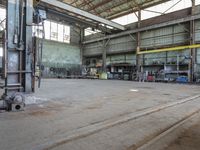 An aerial view of a rugged industrial building in Los Angeles, California, USA. The steel and concrete structure stands tall against the city skyline, showcasing its industrial charm and urban character. The open space on the floor provides ample room for machinery and workspace, while the parking garage and office building in the background add functionality to this bustling industrial complex.