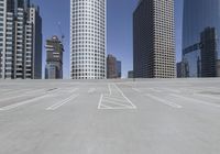 A high-rise building and parking garage in a metropolitan area, adding to the cityscape and skyline of a downtown city on a clear day.