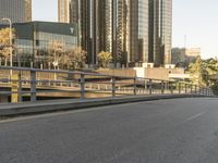 The busy downtown of a metropolitan area is filled with skyscrapers and a complex infrastructure of roads, bridges, and guard rails.