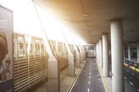 A view of the metropolitan area in Beijing, China showcasing the city's impressive architecture, concrete roads, and elevated bridges. The sunlight shines on the yellow buildings, creating a vibrant and high-tech urban metropolis.