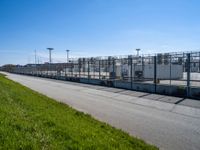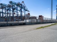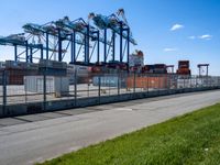A view of the urban landscape of Bremen, Germany, featuring rolling roads, overhead power lines, railway tracks, piers, container ports, factories, residential areas, transmission towers, bridges, and trees