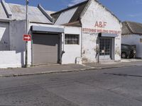 A view of the industrial area in Cape Town, South Africa, showing an asphalt road, buildings, and factories under a clear sky.