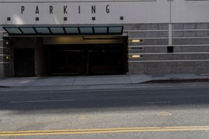 A view of a city street in Los Angeles, California, USA, with its infrastructure of asphalt roads, guard rails, lanes, walls, and concrete structures illuminated by the dawn of a new day.