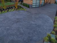 A view of an urban landscape with buildings, asphalt roads, and green grass