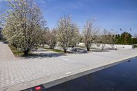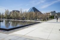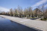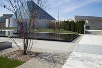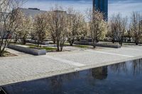 A view of a coastal city with modern architecture, reflecting on the water surface, showcasing the urban design and real estate in the area.