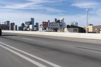 A view of the cityscape in Houston, Texas, with a concrete bridge and underpass crossing a busy highway. The city's transportation infrastructure is visible, as cars and vehicles move along the asphalt road. The motion blur effect adds a sense of movement and energy to the image, while the cloudy sky provides a dramatic backdrop. The vertical garden, grass, and trees add a touch of greenery to the urban setting. The skyline of downtown Houston and its skyscrapers can be seen in the distance, showcasing the city's metropolitan area. This photo captures the essence of a road trip in Houston, with its unique architecture, white fences, and automotive design.
