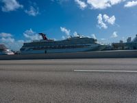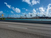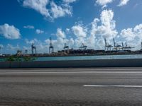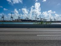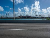 The iconic skyline of Miami Beach, Florida, USA, is highlighted against the coastal waters of the Atlantic Ocean. The cityscape, including its roads and skyscrapers, is seen in profile as the day progresses.