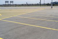 A view of a city road with asphalt and a parking lot in Toronto, Canada. The residential area is surrounded by green open spaces and neatly lined grass. The clear sky and white clouds enhance the beauty of the urban infrastructure and road surface.