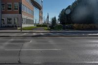 A view of a residential area in Toronto, Ontario, Canada, with a straight road lined with buildings and trees. The asphalt road surface and the vegetation create a beautiful contrast. The clear sky and sunlight add a warm touch to the cityscape.