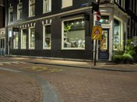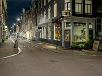The night sky in Amsterdam is illuminated by artificial light coming from the many store fronts, street lights, and windows of the classic architecture found in the city. This residential area in the Netherlands provides infrastructure, roads, and vegetation in a way that creates a unique urban design. Electric fixtures, curb, and road surface complete the urban landscape.