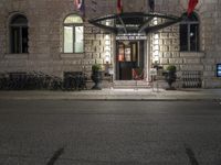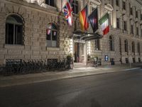 A glimpse of the night time cityscape of Berlin, Germany - with its classic architecture, urban design, cobblestone roads, street lights, and vegetation bathing in the artificial light from the houses and hotels in the neighborhood.