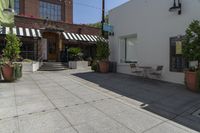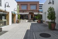 Los Angeles, California, USA is a vibrant city full of diverse architectural designs, open space, and urban design. From the residential area of Pasadena, to parking garages, to cobblestone driveways, the urban life of Los Angeles is visible from this view looking straight down the road. The view includes a tree, facade, tile flooring, and concrete surface.