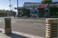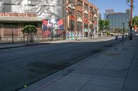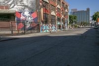 A view of a low residential neighborhood in Los Angeles, California, USA, showcasing the city's classic architecture, graffiti walls, and urban design.