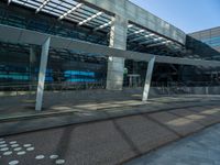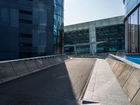 A shot of the mixed-use business district in Holland featuring a combination of modern architecture, asphalt roads, public utilities, and a landmark bridge in the background. The sun hat, bench, and tree provide a warm contrast to the cold winter morning.